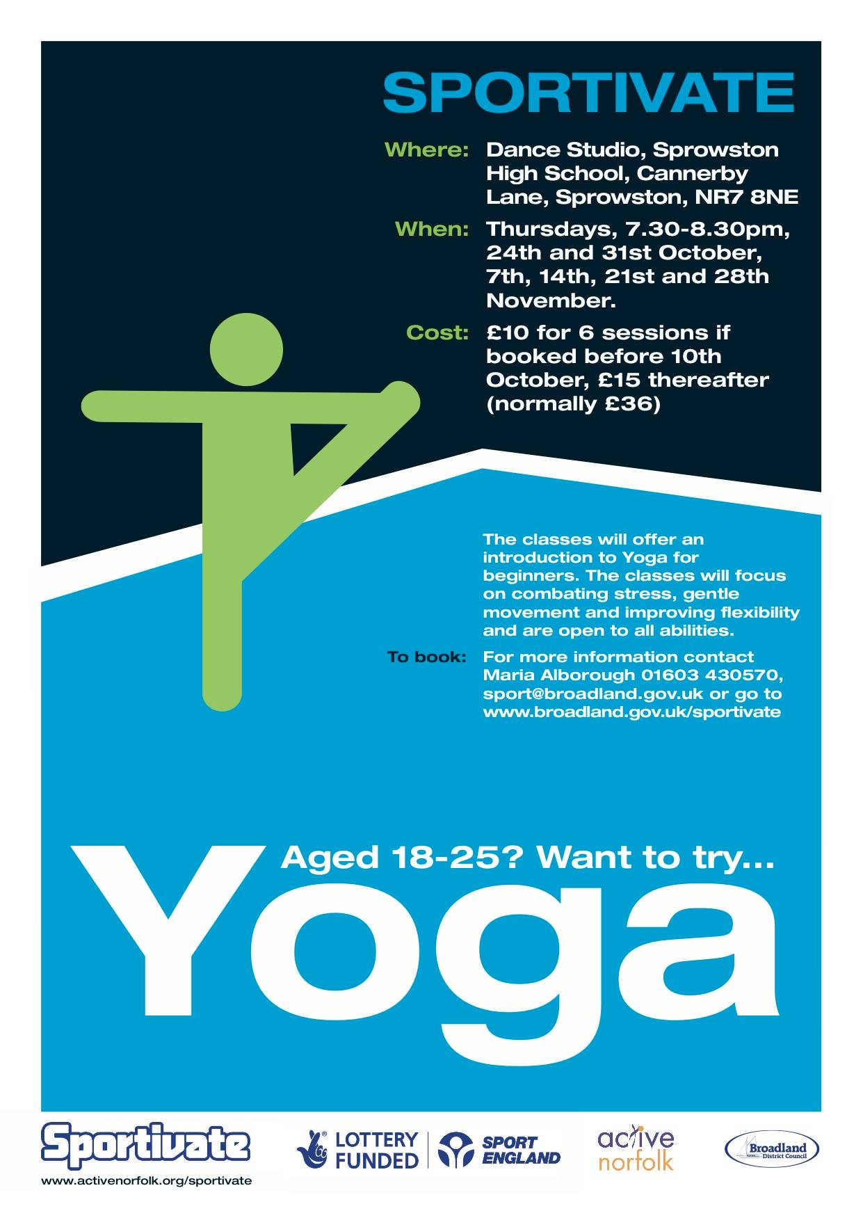 The Sportivate Thursday Yoga in Sprowston has a new start date of February 27th 2014 – contact details remain the same.
